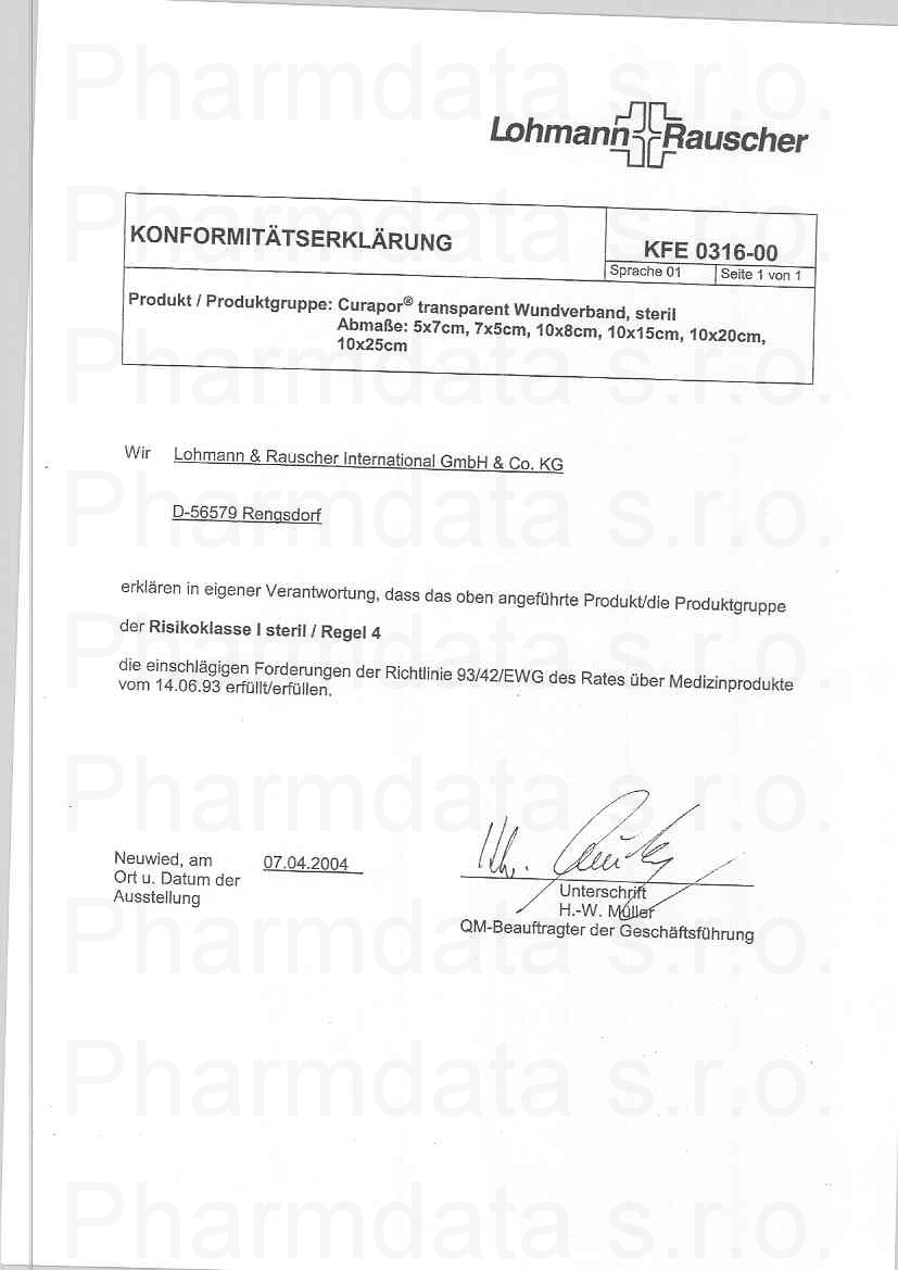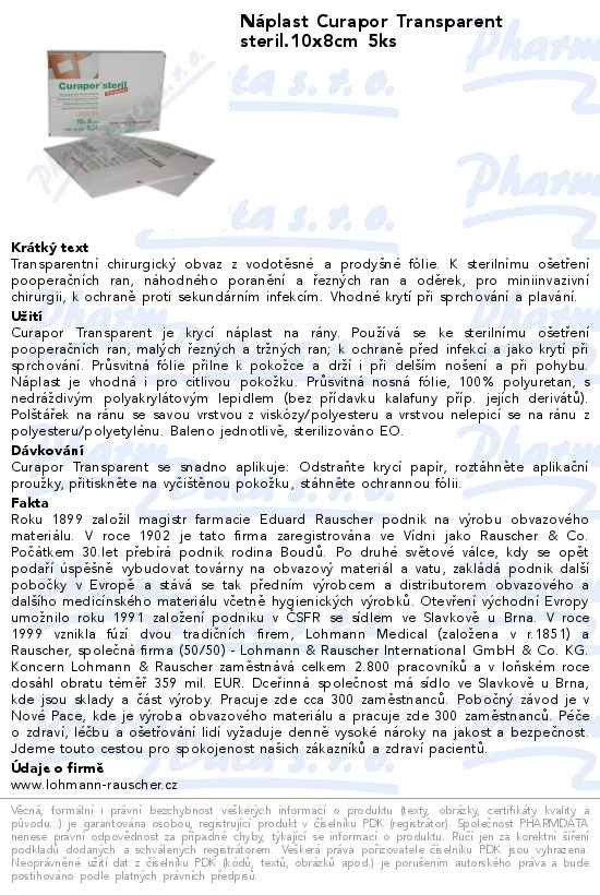 Náplast Curapor Transparent steril.10x8cm 5ks