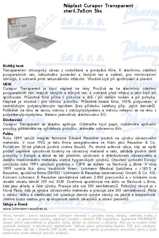 Náplast Curapor Transparent steril.7x5cm 5ks