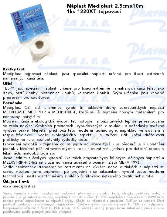 Náplast Mediplast 2.5cmx10m 1ks 1220XT tejpovací