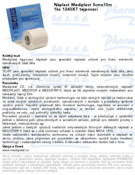 Náplast Mediplast 5cmx10m 1ks 1240XT tejpovací