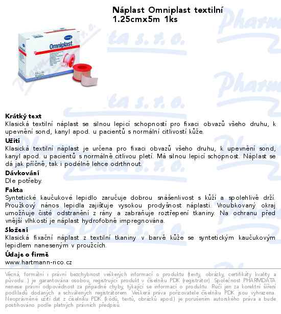 Náplast Omniplast textilní 1.25cmx5m 1ks