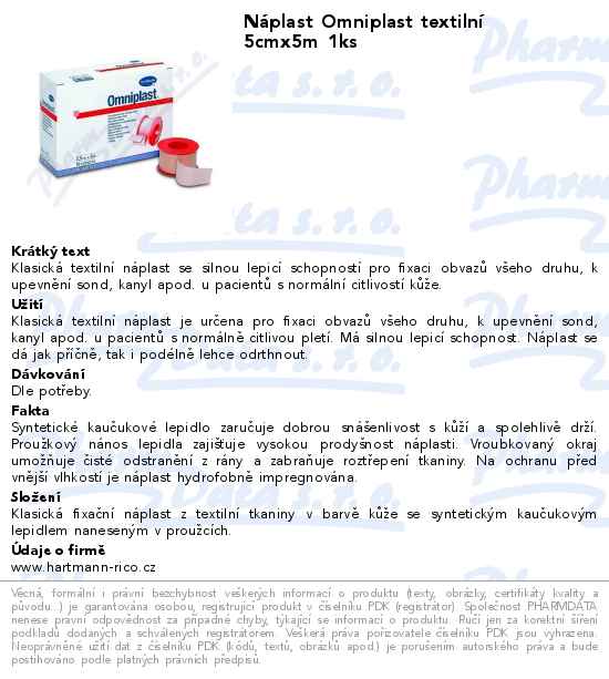 Náplast Omniplast textilní 5cmx5m 1ks