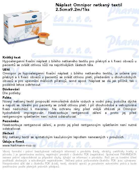 Náplast Omnipor netkaný textil 2.5cmx9.2m/1ks