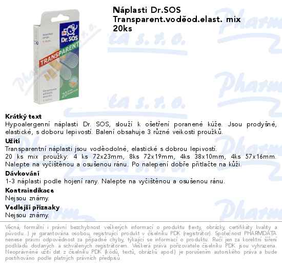 Náplasti Dr.SOS Transparent.voděod.elast. mix 20ks