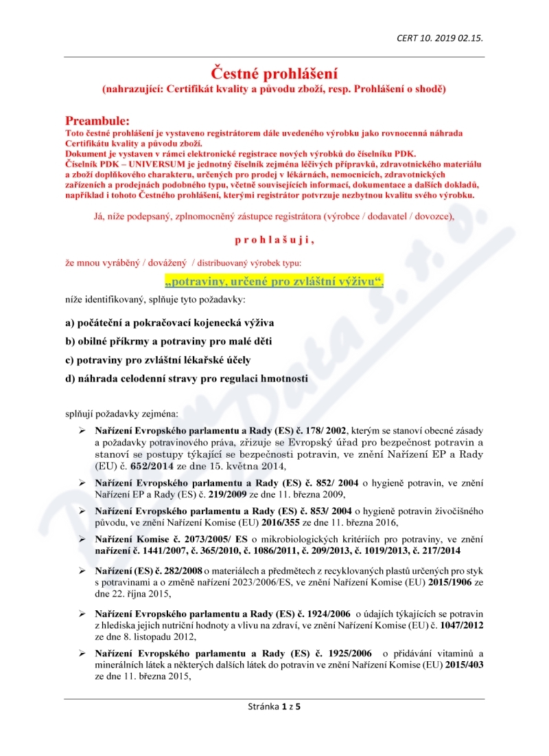 5 strany čestného prohlášení: strana 1, strana 2, strana 3, strana 4, strana 5,