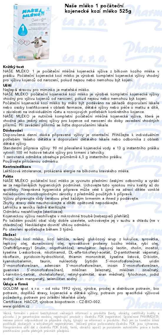 Naše mléko 1 počáteční kojenecké kozí mléko 525g
