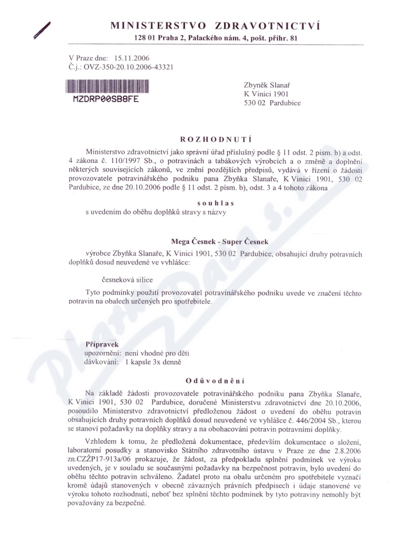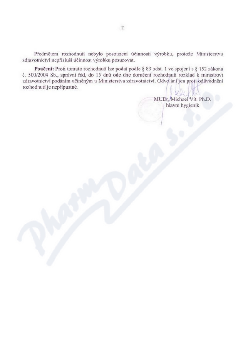 2 strany osvědčení hlavního hygienika: strana 1, strana 2,