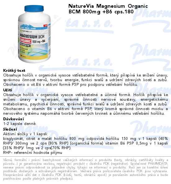 NatureVia Magnesium Organic BCM 800mg +B6 cps.180
