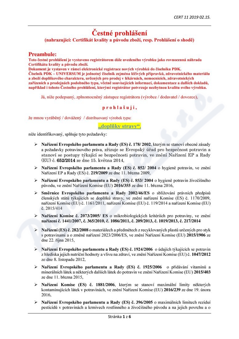 6 strany čestného prohlášení: strana 1, strana 2, strana 3, strana 4, strana 5, strana 6,
