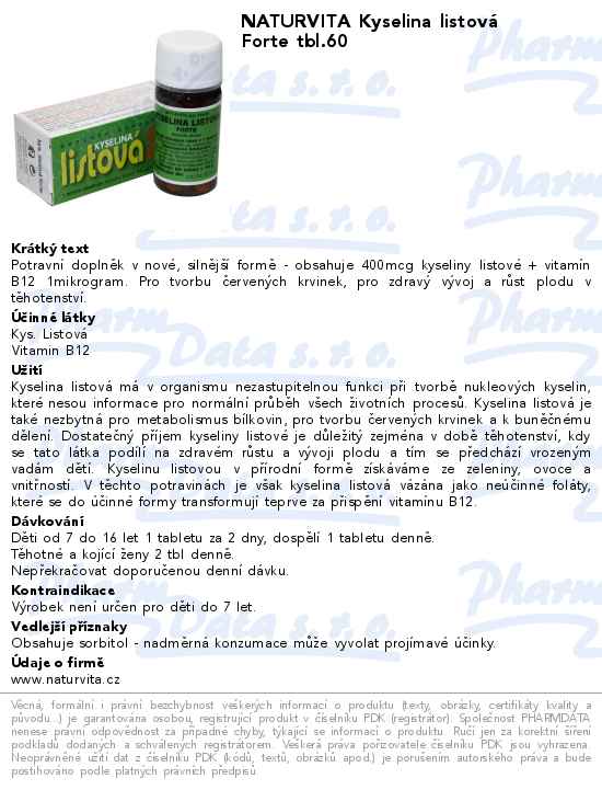 NATURVITA Kyselina listová Forte tbl.60