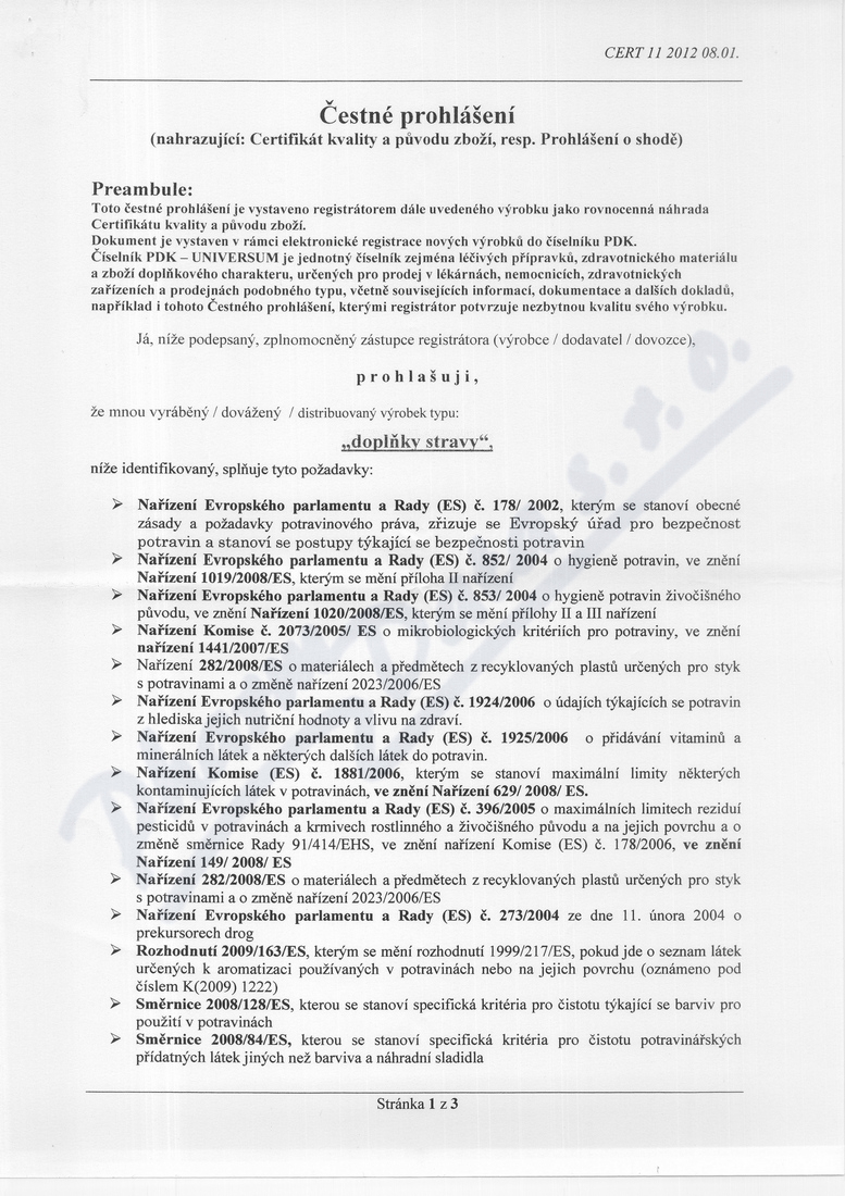 3 strany čestného prohlášení: strana 1, strana 2, strana 3,