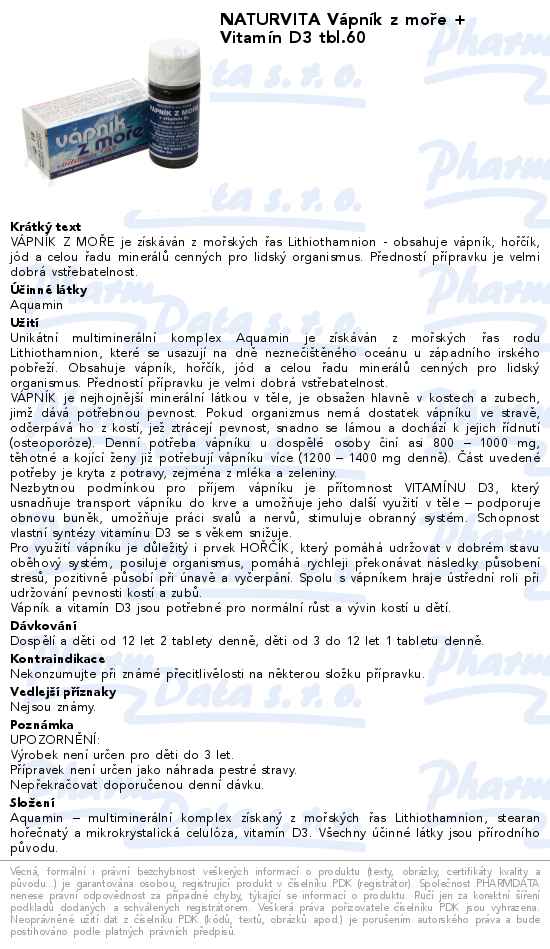 NATURVITA Vápník z moře + Vitamín D3 tbl.60