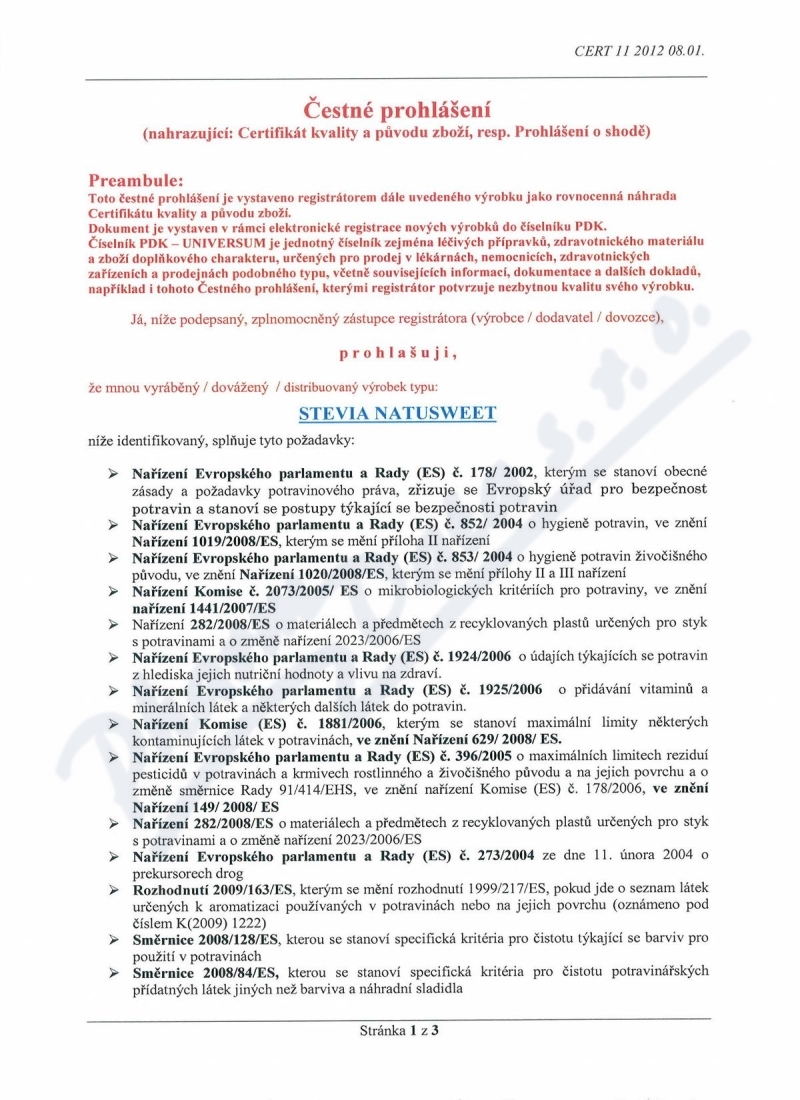 3 strany čestného prohlášení: strana 1, strana 2, strana 3,