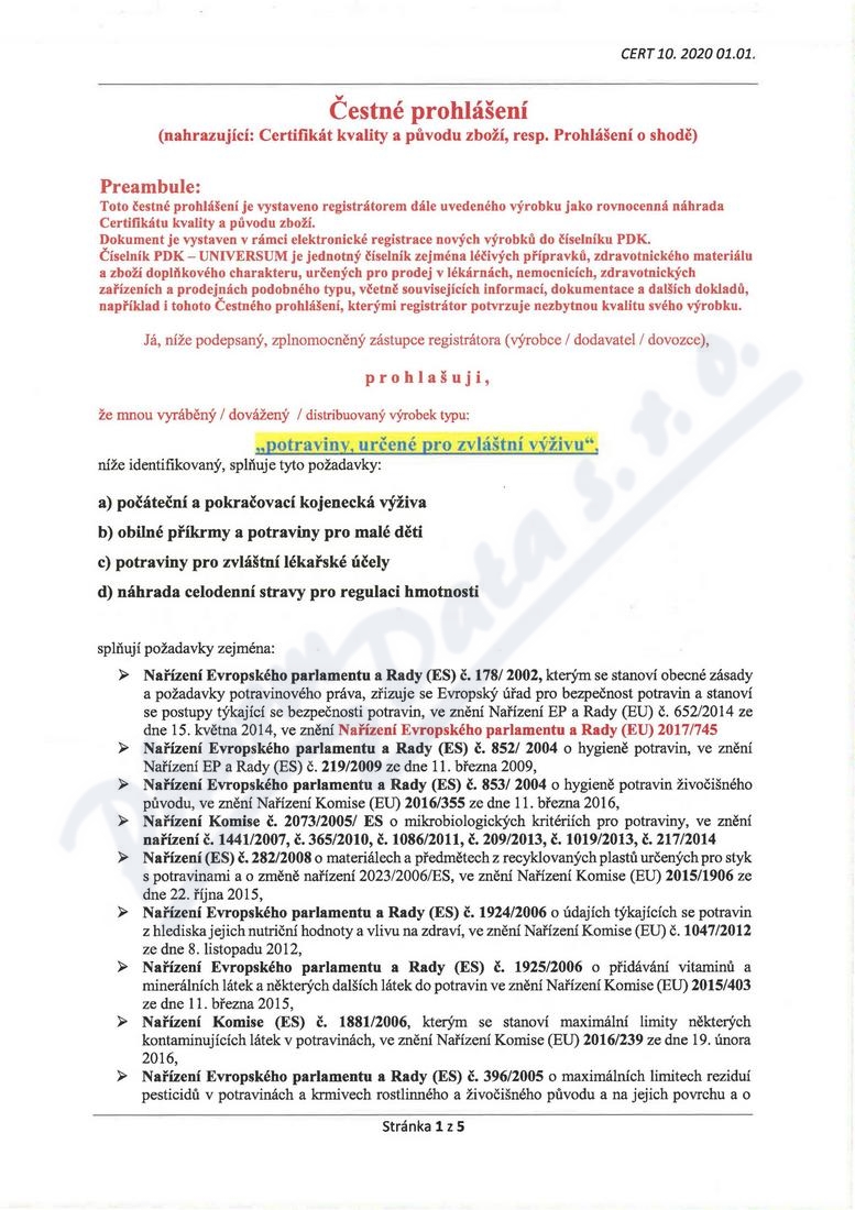 Obsahuje: POTRAVINY PRO ZVLÁŠTNÍ LÉKAŘSKÉ ÚČELY (PZLÚ) (ČESKÁ ATC SKUP