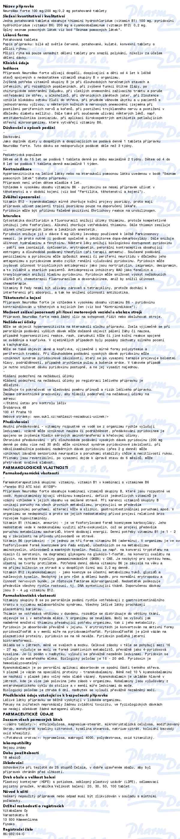 Obsahuje: VITAMIN B1 V KOMBINACI S VITAMINEM B6 A/NEBO B12