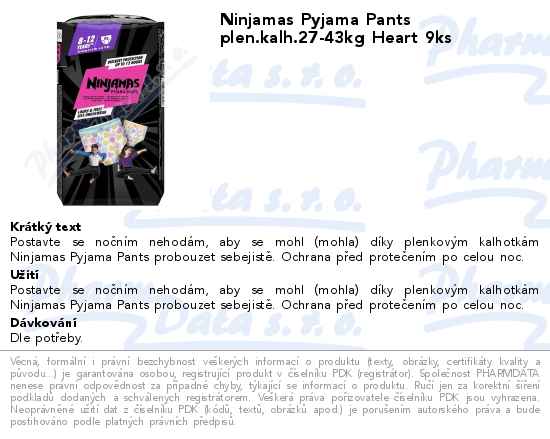 Ninjamas Pyjama Pants plen.kalh.27-43kg Heart 9ks