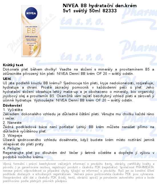 NIVEA BB hydratační den.krém 5v1 světlý 50ml 82333