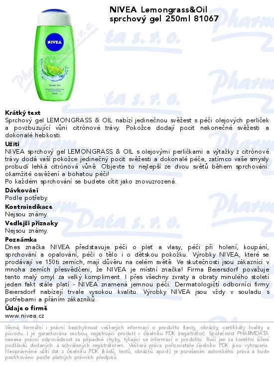 NIVEA Lemongrass&Oil sprchový gel 250ml 81067