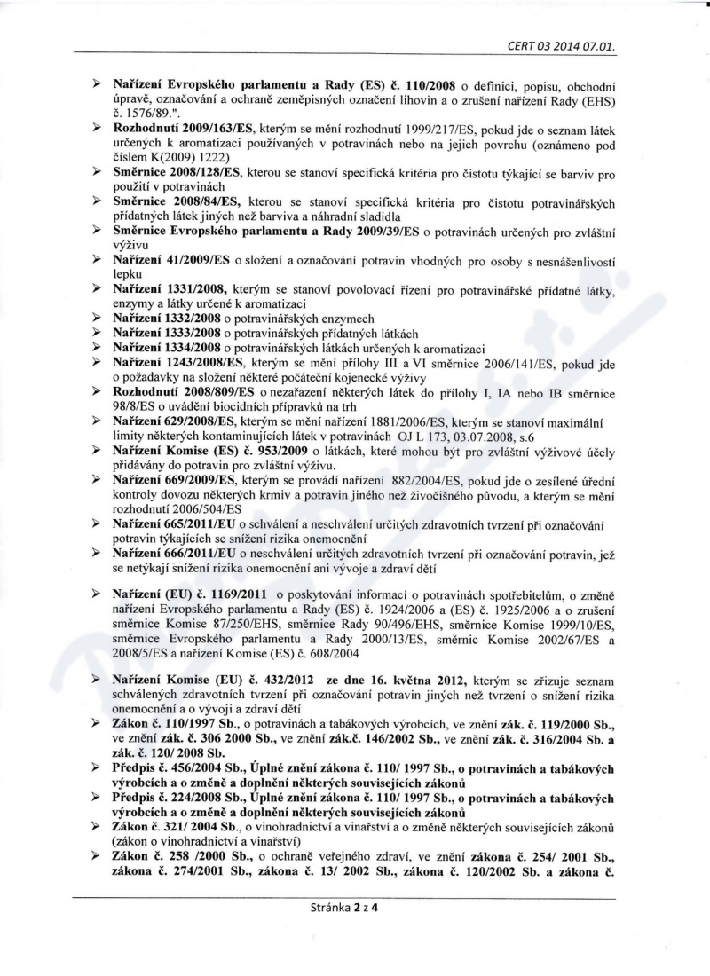2 strany osvědčení hlavního hygienika: strana 1, strana 2,