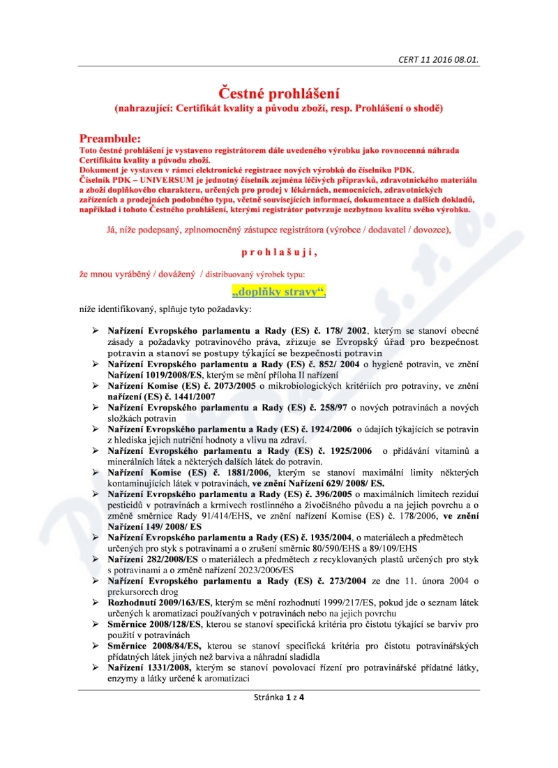 4 strany čestného prohlášení: strana 1, strana 2, strana 3, strana 4,