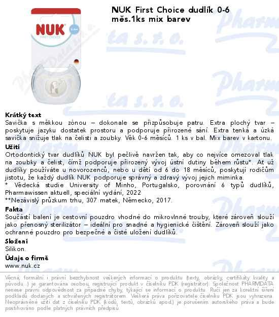 NUK First Choice dudlík 0-6 měs.1ks mix barev