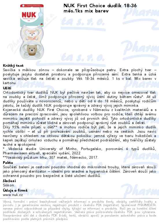 NUK First Choice dudlík 18-36 měs.1ks mix barev