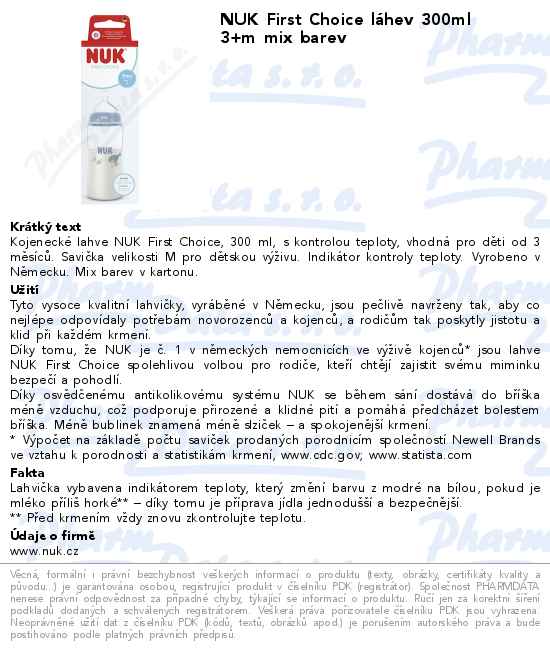 NUK First Choice láhev 300ml 3+m mix barev