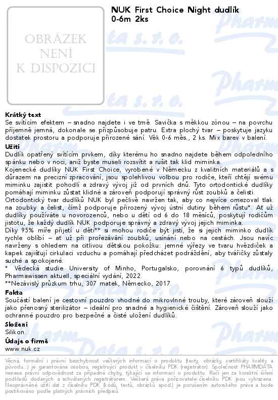 NUK First Choice Night dudlík 0-6m 2ks