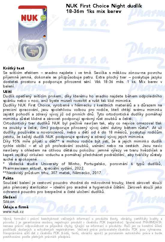 NUK First Choice Night dudlík 18-36m 1ks mix barev