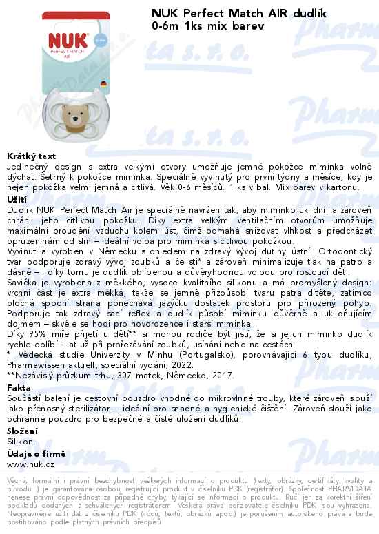 NUK Perfect Match AIR dudlík 0-6m 1ks mix barev