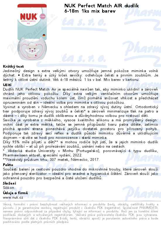 NUK Perfect Match AIR dudlík 6-18m 1ks mix barev