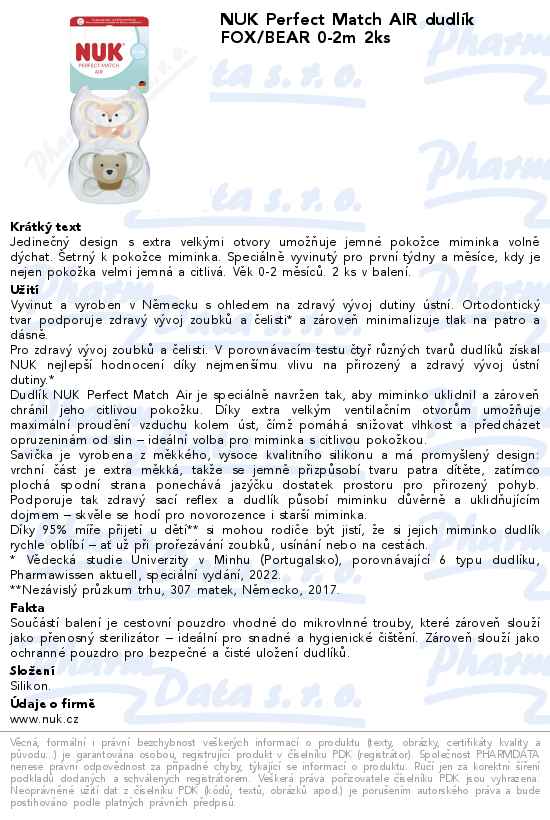 NUK Perfect Match AIR dudlík FOX/BEAR 0-2m 2ks