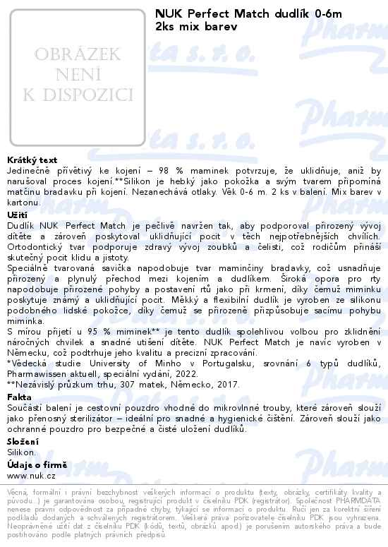 NUK Perfect Match dudlík 0-6m 2ks mix barev