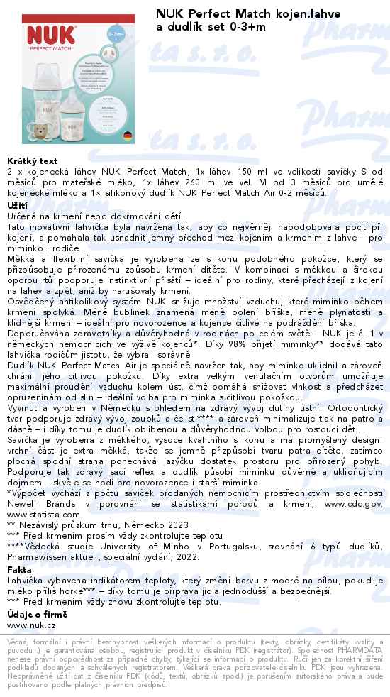 NUK Perfect Match kojen.lahve a dudlík set 0-3+m