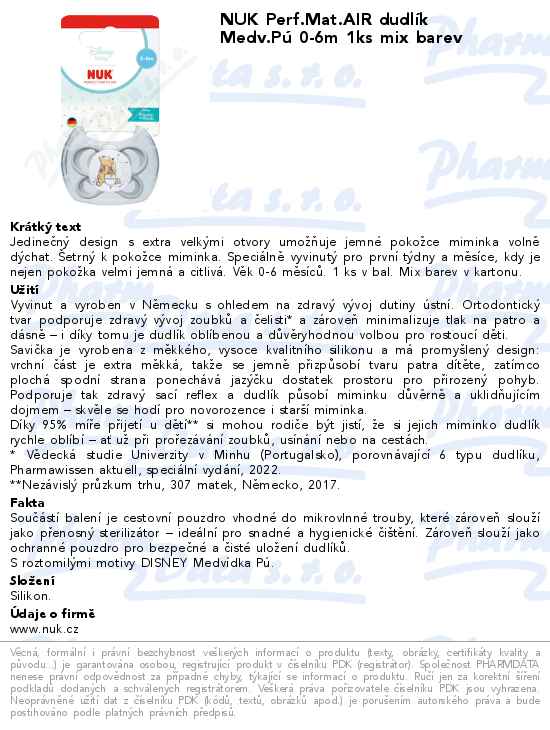 NUK Perf.Mat.AIR dudlík Medv.Pú 0-6m 1ks mix barev
