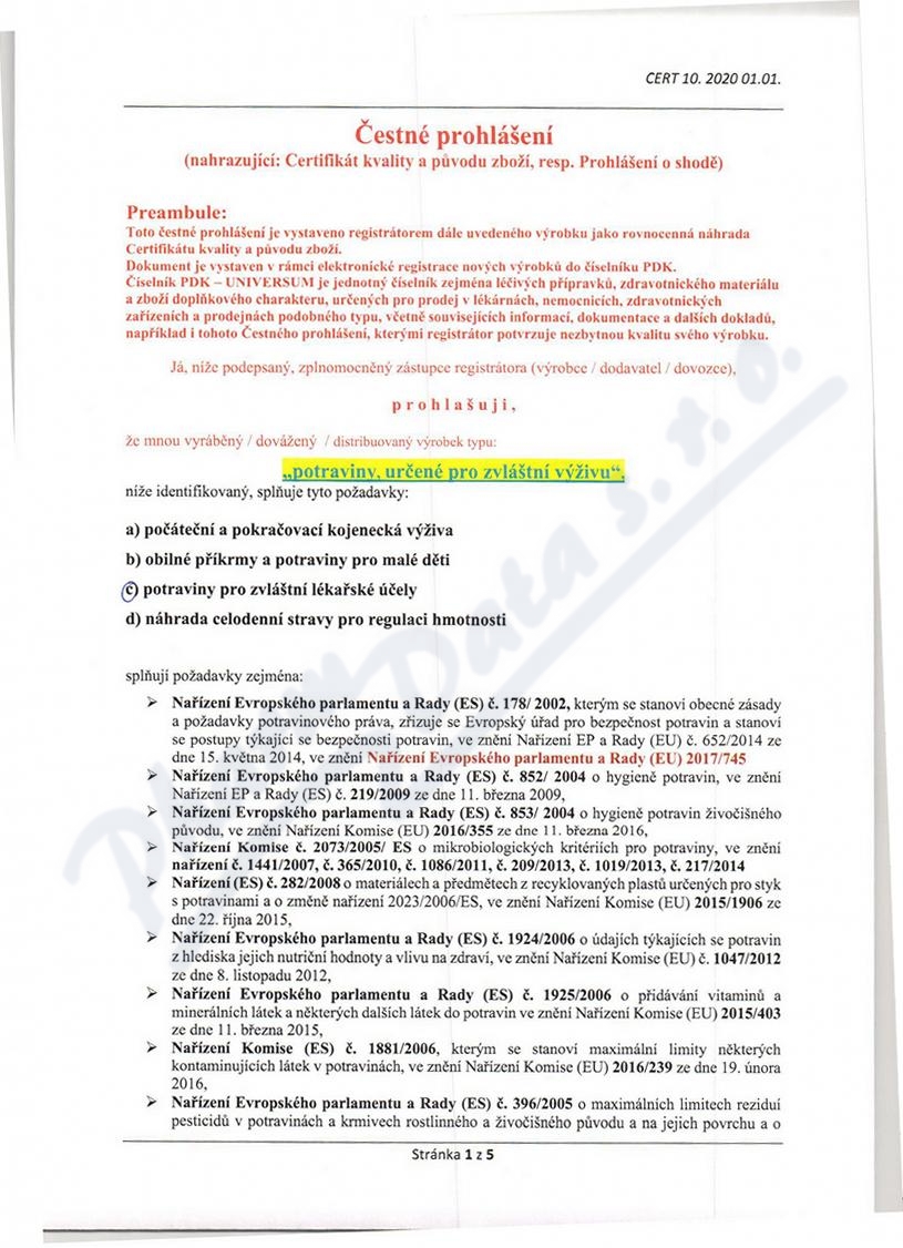 Obsahuje: POTRAVINY PRO ZVLÁŠTNÍ LÉKAŘSKÉ ÚČELY (PZLÚ) (ČESKÁ ATC SKUP