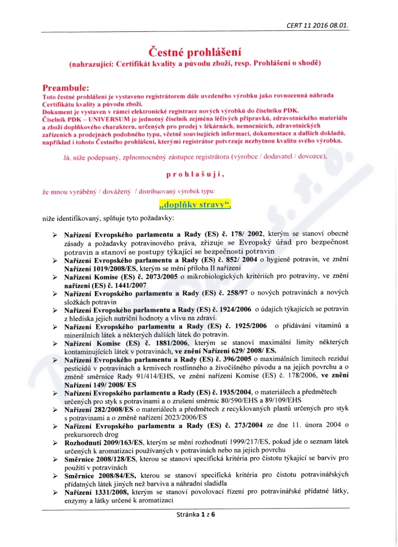 6 strany čestného prohlášení: strana 1, strana 2, strana 3, strana 4, strana 5, strana 6,