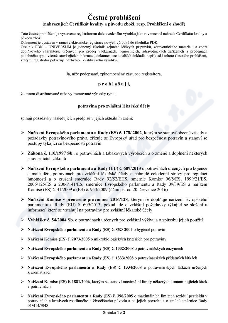 Obsahuje: POTRAVINY PRO ZVLÁŠTNÍ LÉKAŘSKÉ ÚČELY (PZLÚ) (ČESKÁ ATC SKUP