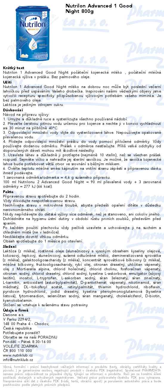 Nutrilon Advanced 1 Good Night 800g