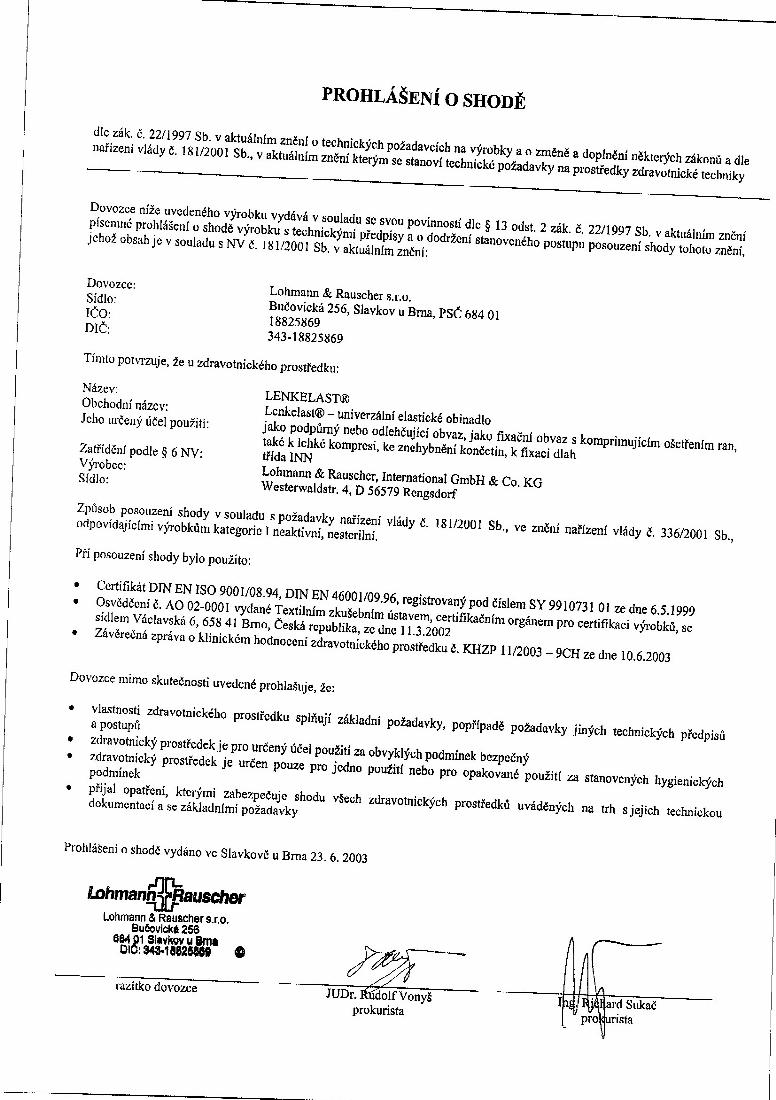 prohlášení o shodě