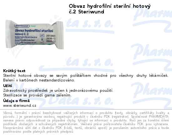 Obvaz hydrofilní sterilní hotový č.2 Steriwund