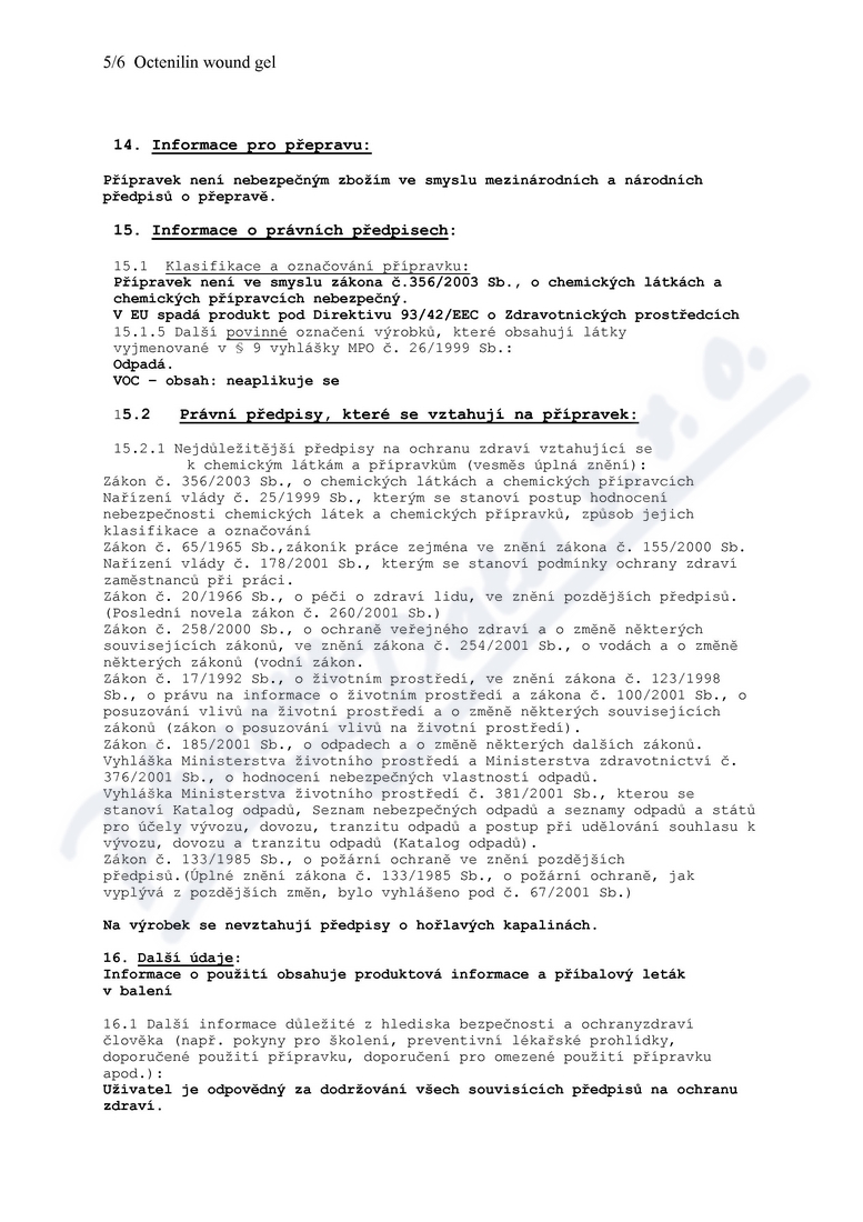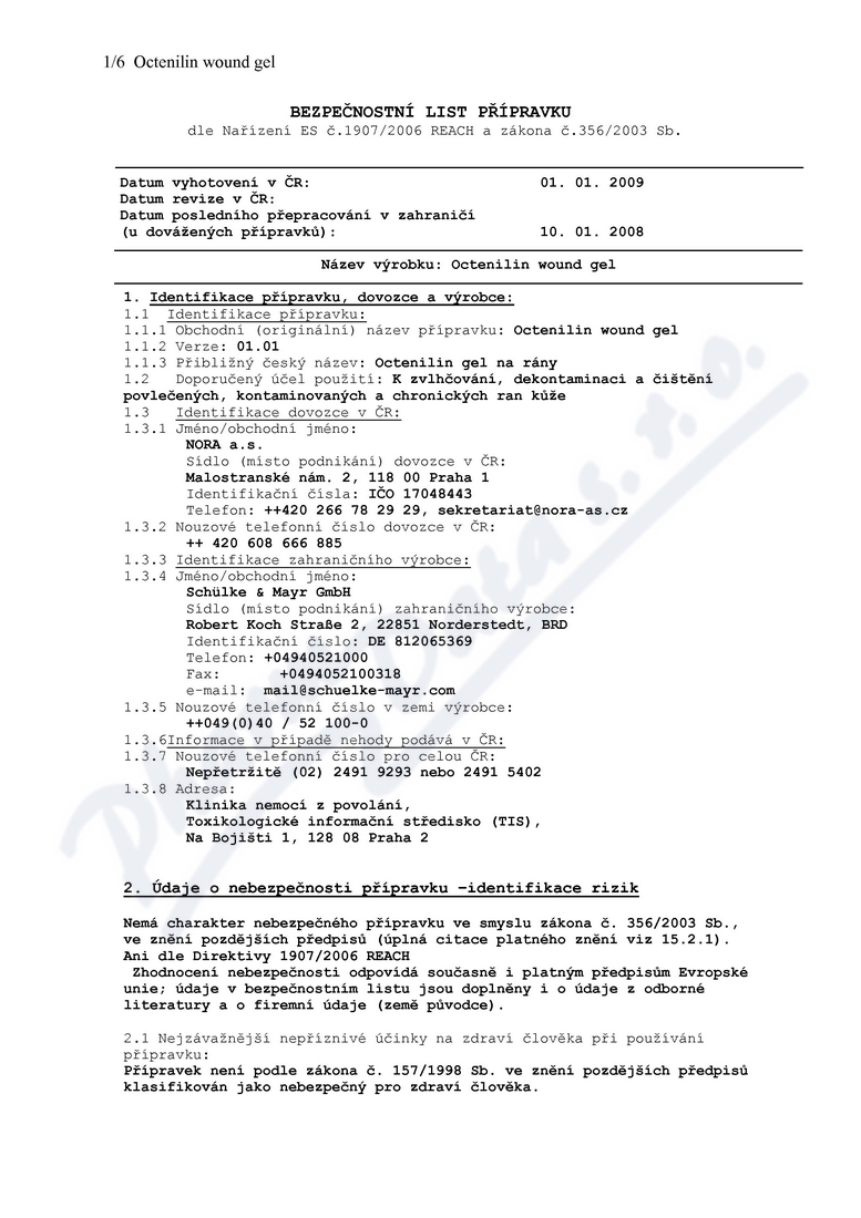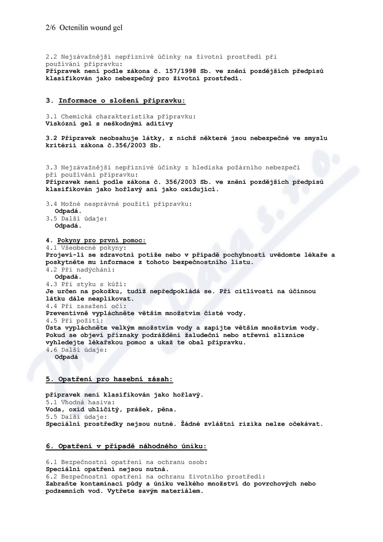 6 strany bezpečnostních listů: strana 1, strana 2, strana 3, strana 4, strana 5, strana 6,