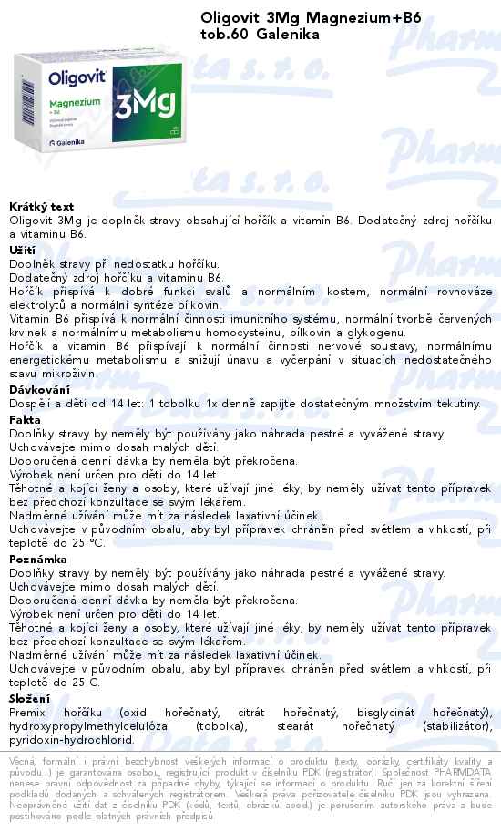 Oligovit 3Mg Magnezium+B6 tob.60 Galenika