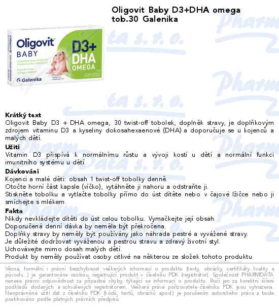 Oligovit Baby D3+DHA omega tob.30 Galenika