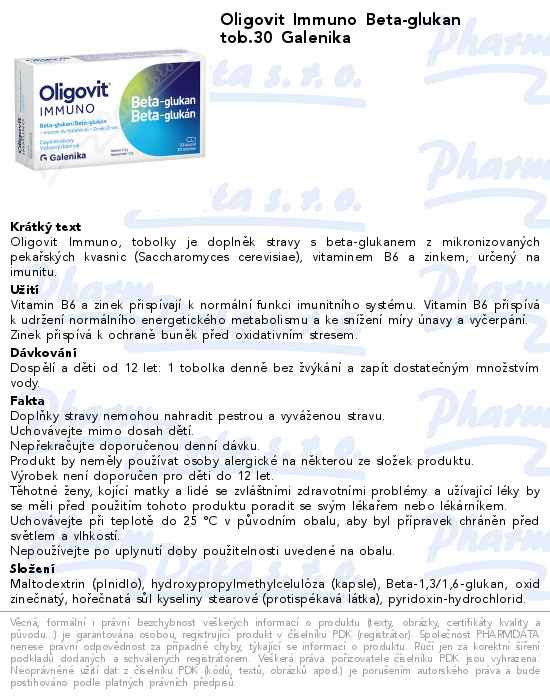 Oligovit Immuno Beta-glukan tob.30 Galenika