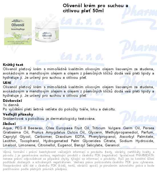 Olivenöl krém pro suchou a citlivou pleť 50ml