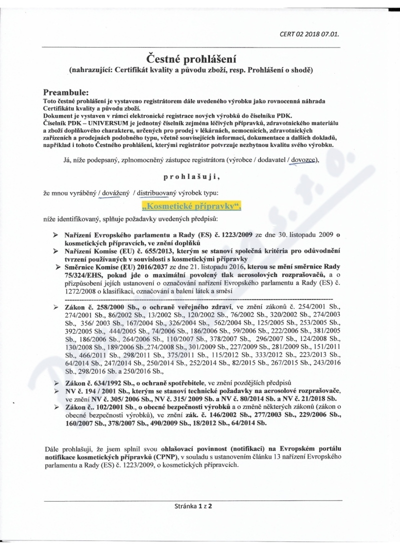 4 strany osvědčení hlavního hygienika: strana 1, strana 2, strana 3, strana 4,