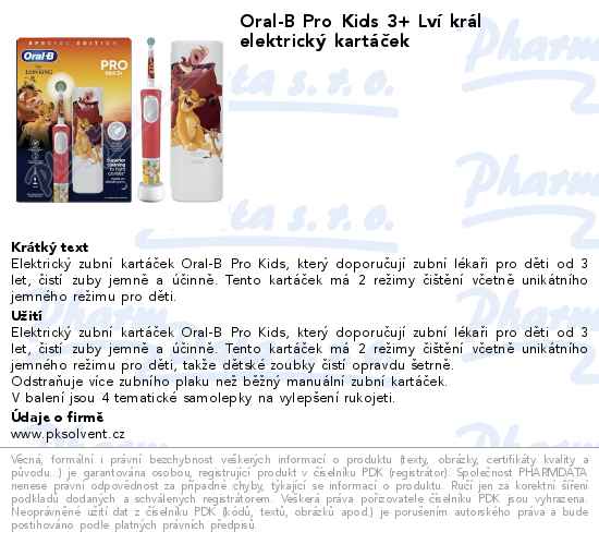 Oral-B Pro Kids 3+ Lví král elektrický kartáček