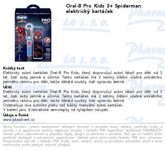Oral-B Pro Kids 3+ Spiderman elektrický kartáček