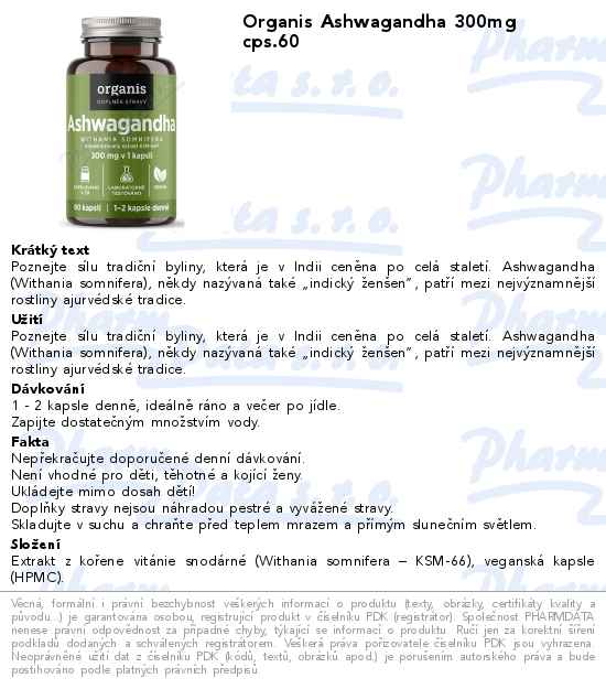 Organis Ashwagandha 300mg cps.60